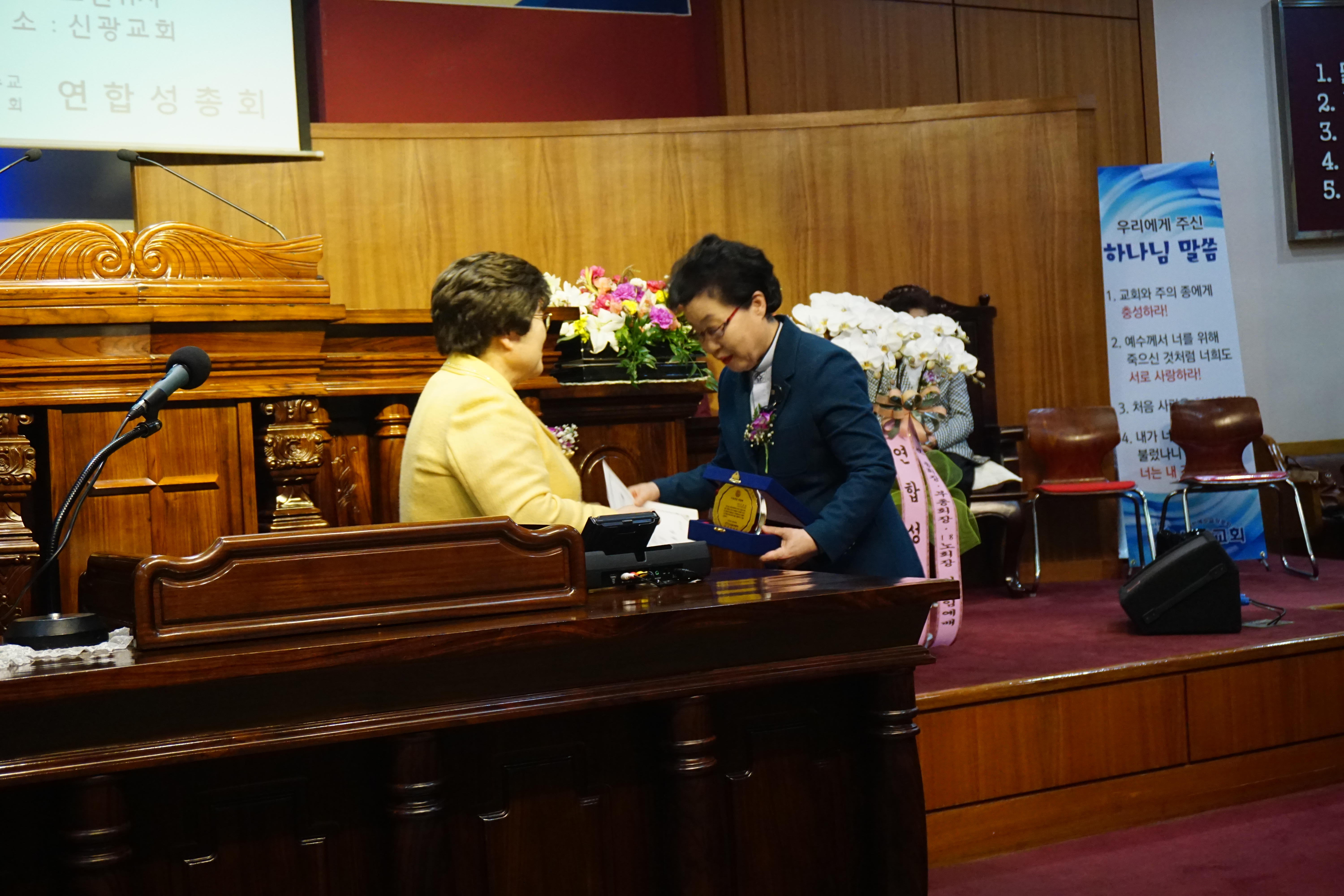 취임패 증정: 신임부총회장 김원숙 목사
