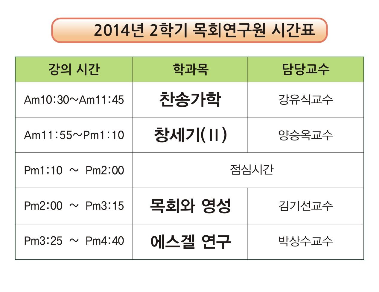 | 다음글 | 2014년 2학기 신학과 시간표/학사일정표 | 전우정 | 2014.04.11 | 1 | 157 |
